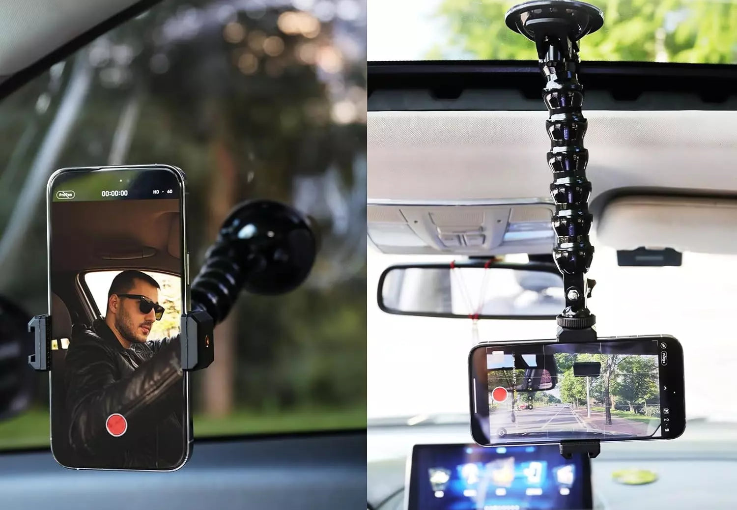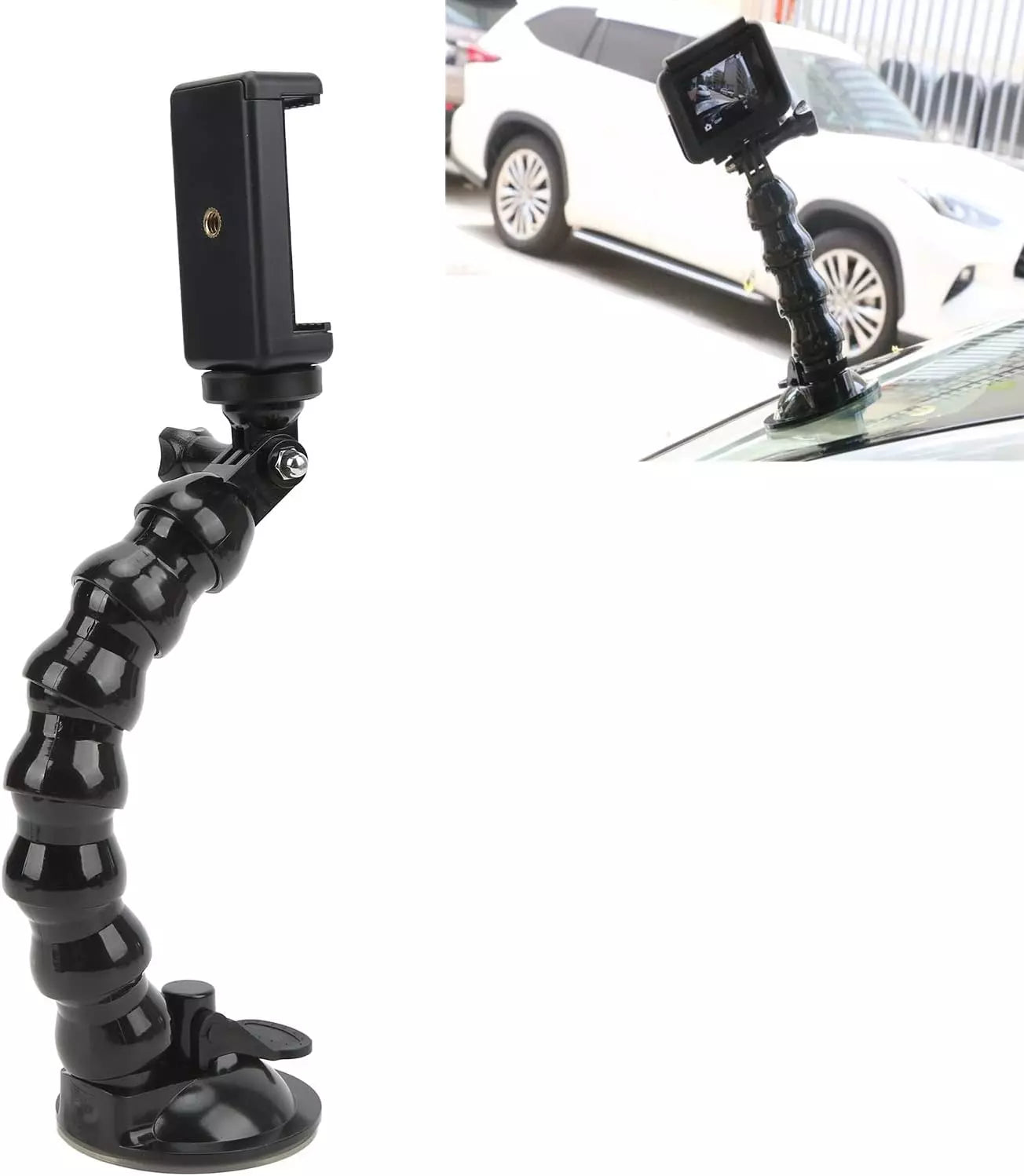 ✅Acest suport auto cu gât flexibil îți oferă libertate totală în reglarea unghiului datorită celor 7 articulații rotative la 360°. Indiferent unde îl montezi, îți ține telefonul sau camera de acțiune perfect fixat.