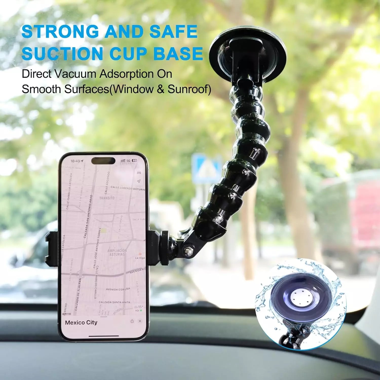 ✅ Ventuză puternică ce aderă pe geam, bord sau masă fără urme