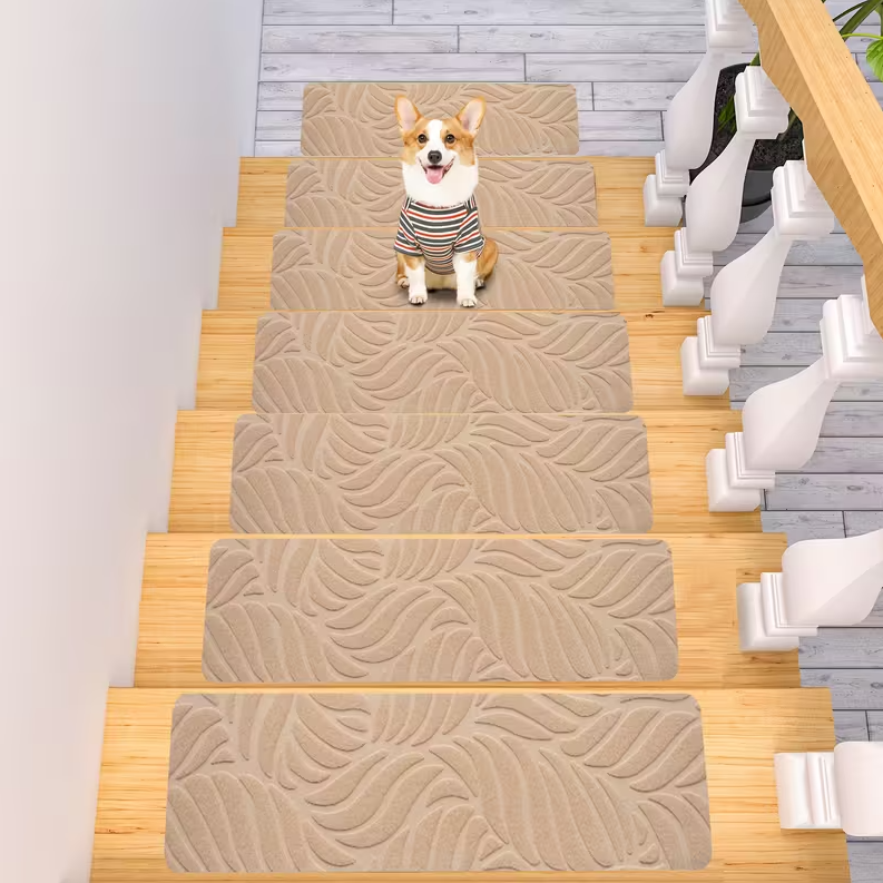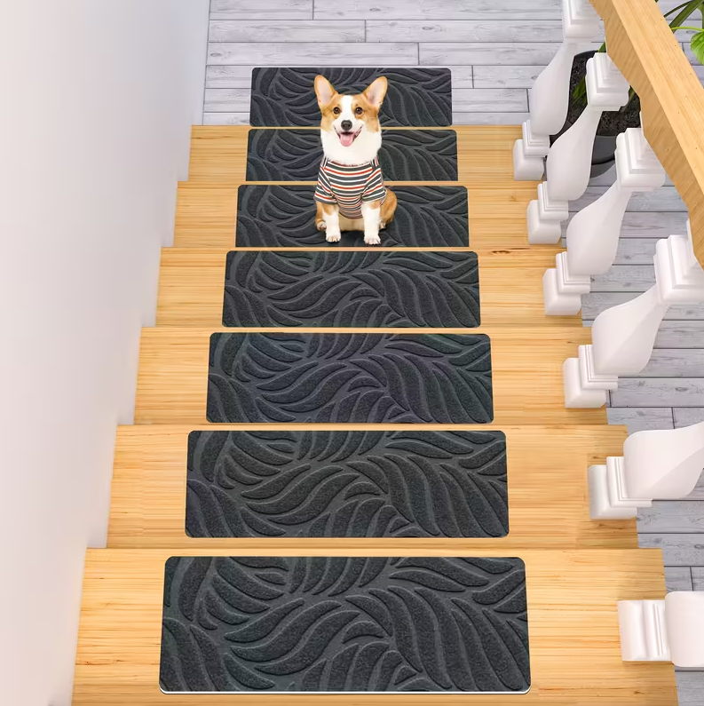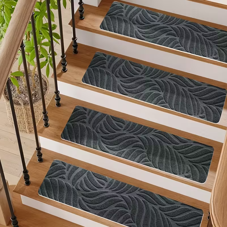 Realizate din fetru moale, dar rezistent, aceste covorașe absorb zgomotul și sporesc confortul. Se pot tăia ușor pentru a se potrivi pe orice tip de treaptă și se fixează fără a lăsa urme.